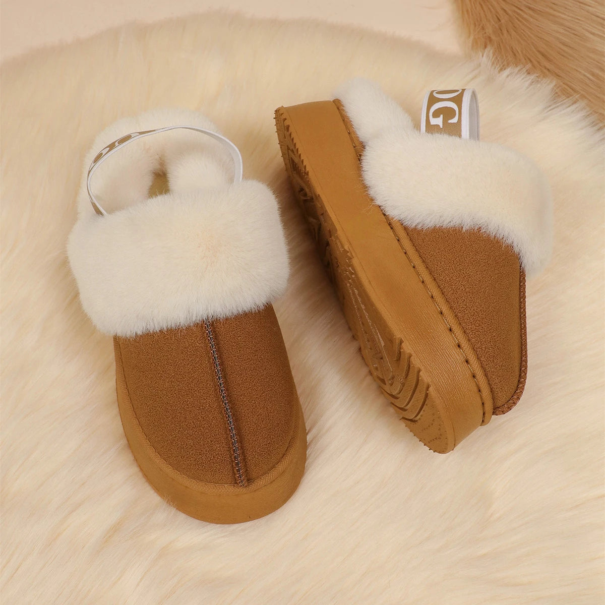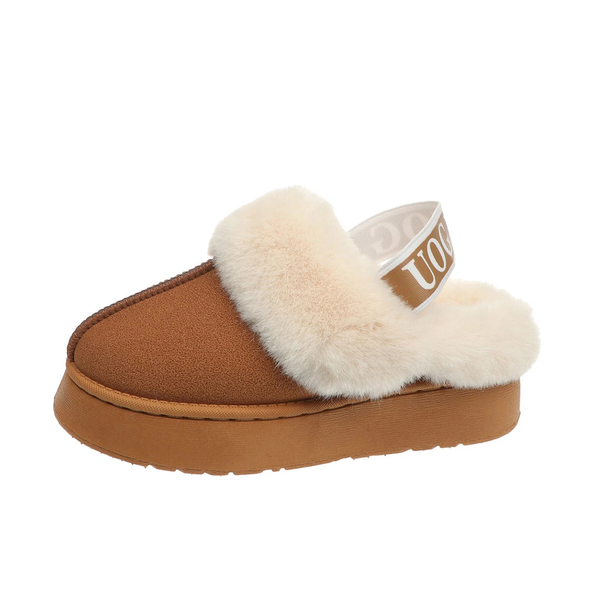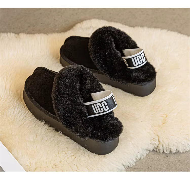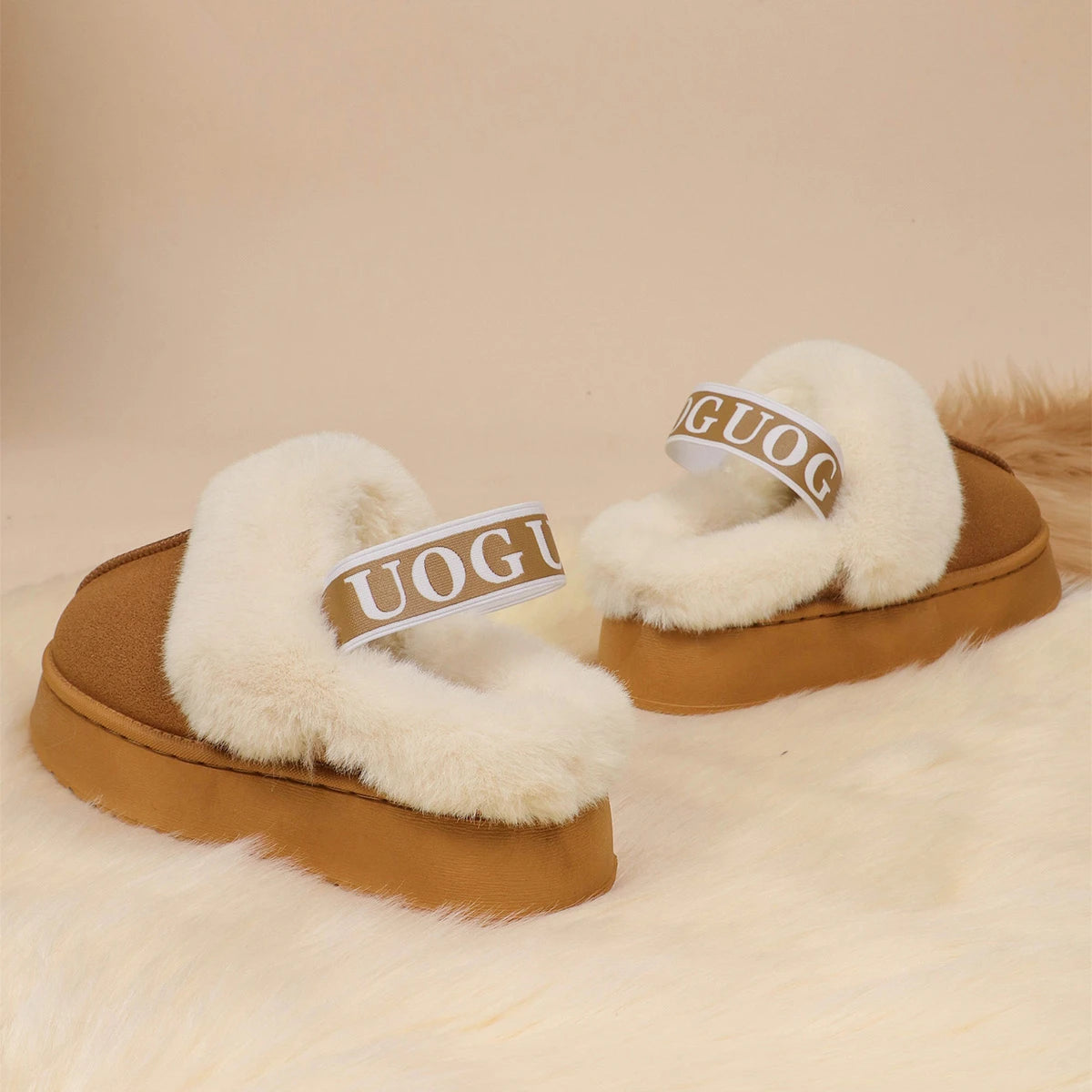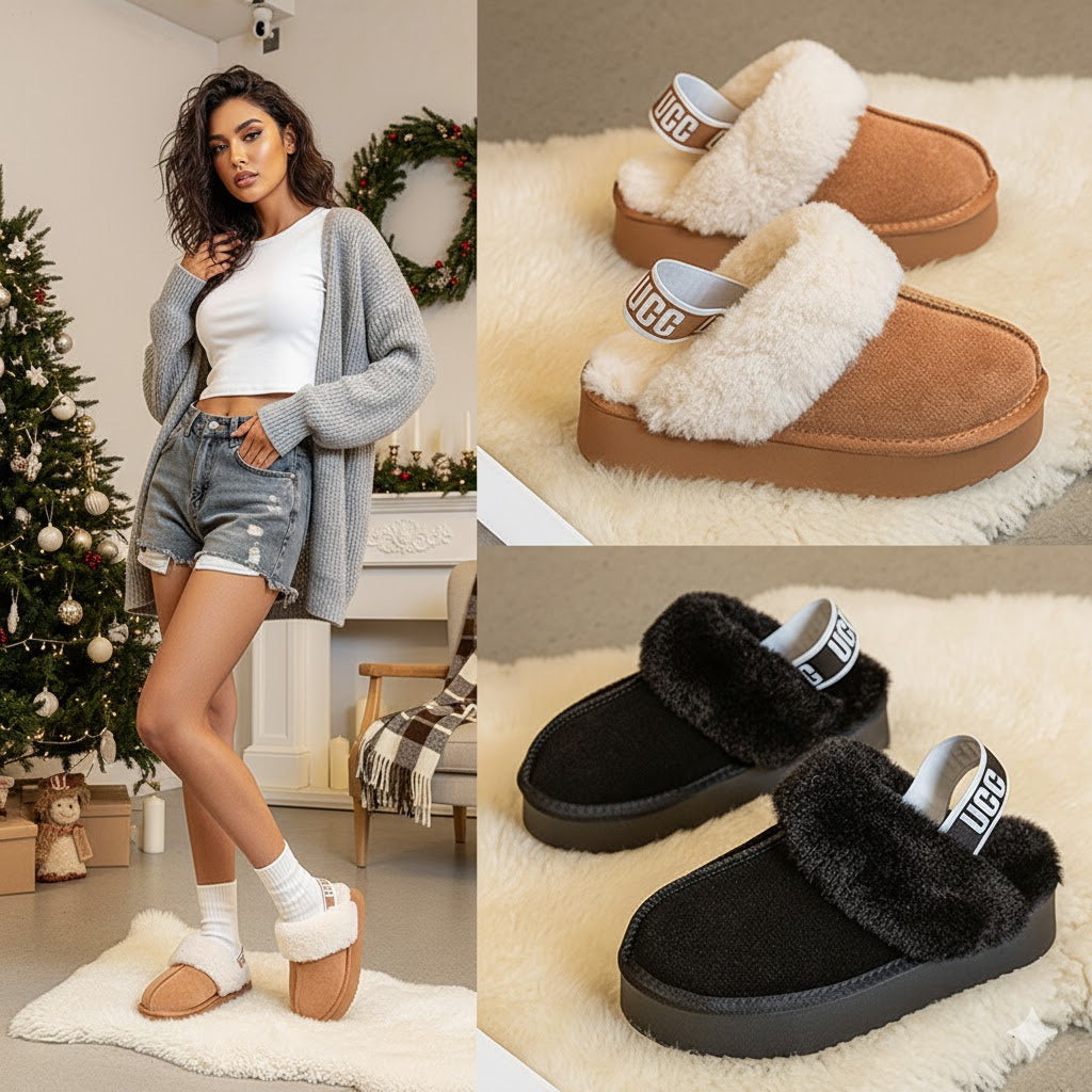 The platform is a fashionable style element intended to elevate the look, but it is integrated in a way that does not compromise comfort. The slippers maintain their functionality, ensuring warmth and a comfortable fit while adding a contemporary touch to your indoor attire.